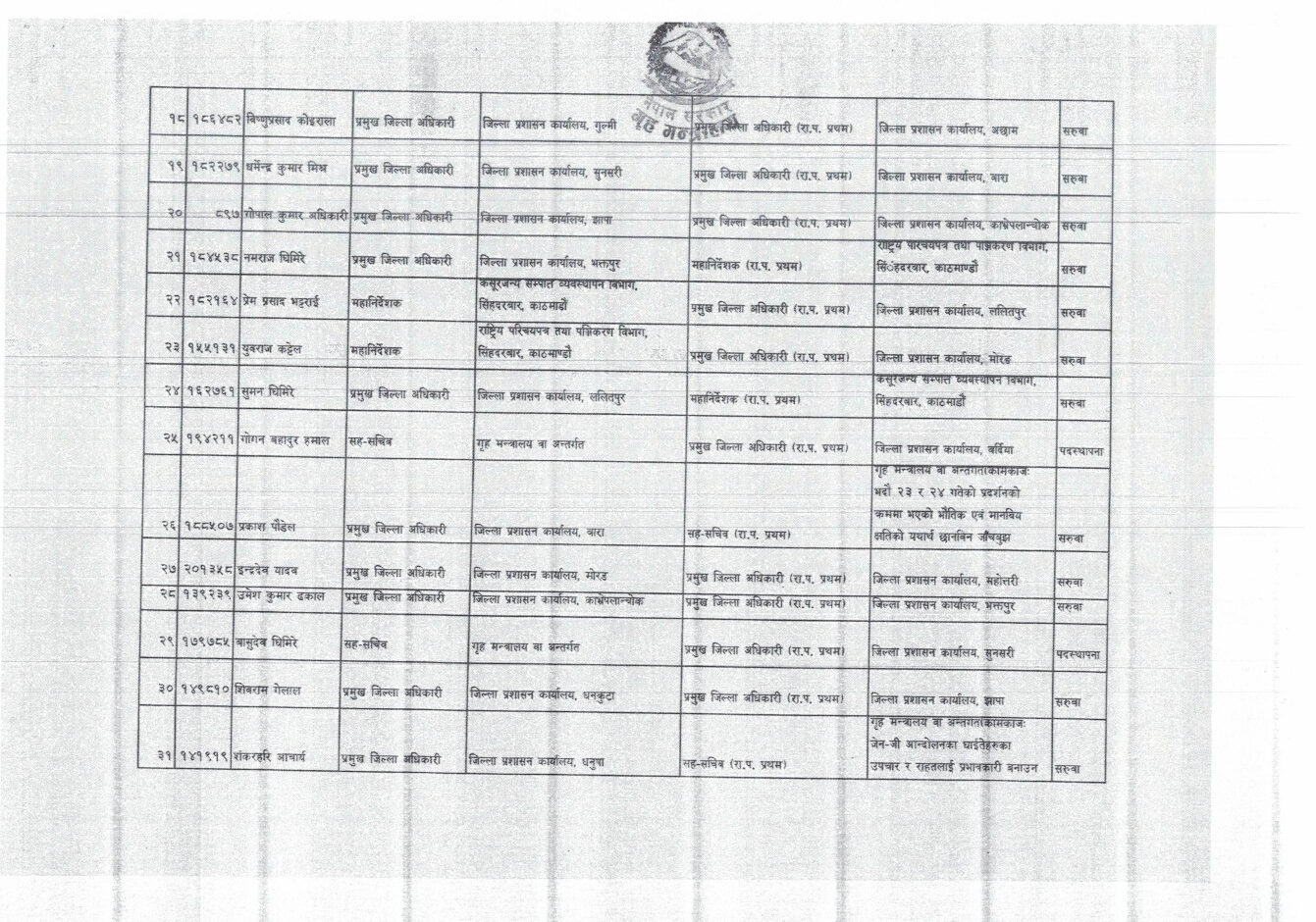 ३६ जना प्रमुख जिल्ला अधिकारीको सरुवा, (सुचि सहित)