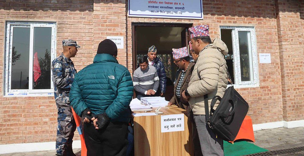 काठमाडौं। आसन्न प्रतिनिधिसभा सदस्य निर्वाचनका लागि काठमाडौँका १० वटै निर्वाचन क्षेत्रमा अहिले धमाधम उम्मेदवारको मनोनय दर्ता भइरहेको छ।