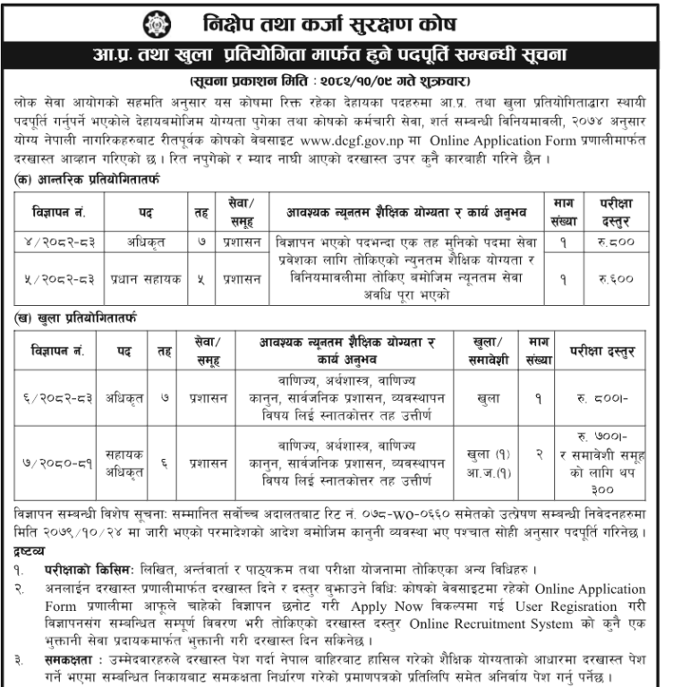 निक्षेप तथा कर्जा सुरक्षण कोषले माग्यो ५ जना कर्मचारी (सुचना सहित)