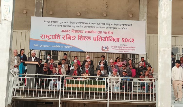 भक्तपुर। भक्तपुरको सूर्यविनायक नगरपालिकाले आयोजना गर्ने तेस्रो राष्ट्रपति रनिङ शिल्ड प्रतियोगिताको तयारी पूरा भएको छ। ३ दिनसम्म सूर्यविनायका–६ बनाचौर खेलमैदानमा सञ्चालन हुने उक्त प्रतियोगितामा नगरक्षेत्र भित्रका ३६ विद्यालयका १ हजार विद्यार्थी सहभागी हुने छन्।