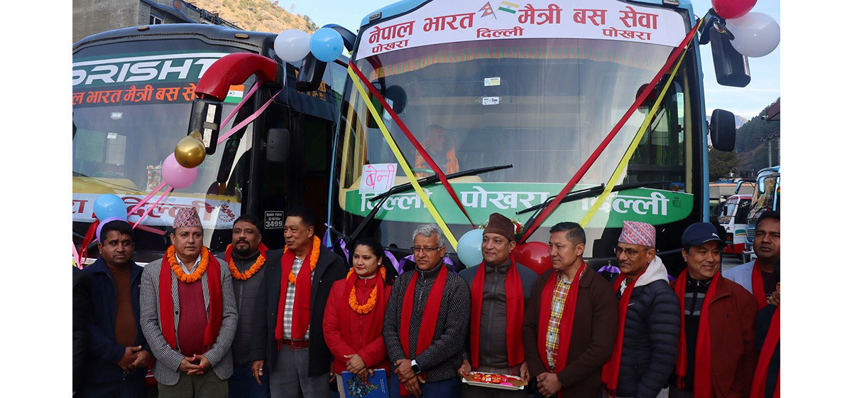 “बेनीदेखि दिल्लीसम्म २७ घण्टामा यात्रा गर्न सकिन्छ”, उनले भने, “बेनीदेखि हरेक दिन बिहान ६ः४५ बजे र दिल्लीको सरोजनी नगरबाट साँझ ४ः०० बजे बस छुट्नेछ।” बेनीबाट नयाँ दिल्लीसम्मको प्रतियात्रु शुल्क ५४ सय रुपैयाँ र नयाँ दिल्लीबाट ३२ सय सय भारु भाडादर कायम भएको छ।