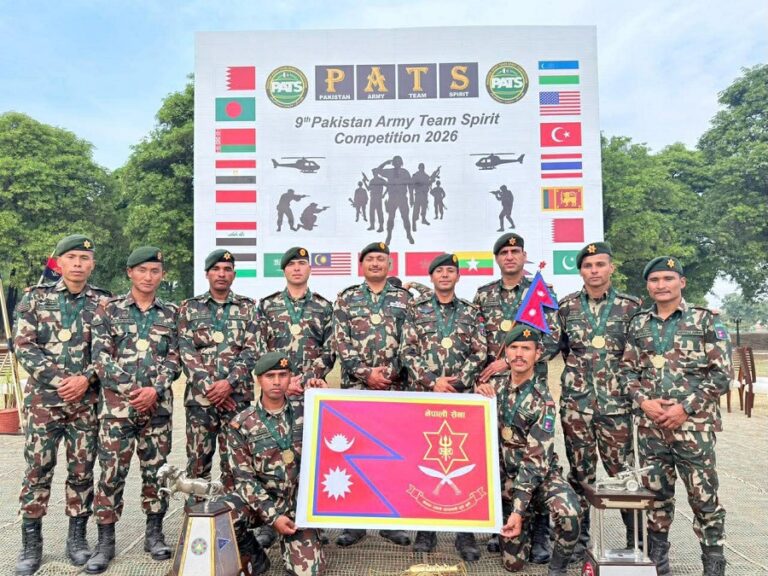 यही माघ २२ गतेदेखि २४ गतेसम्म पाकिस्तानको पञ्जाव प्रान्तको खरियाँस्थित ‘नेशनल काउन्टर टेरोरिजम सेन्टर’मा आयोजित प्रतियोगितामा सर्वोत्कष्ट अङ्कसहित स्वर्ण पदक जितेको नेपाली सेनाले जनाएको छ।