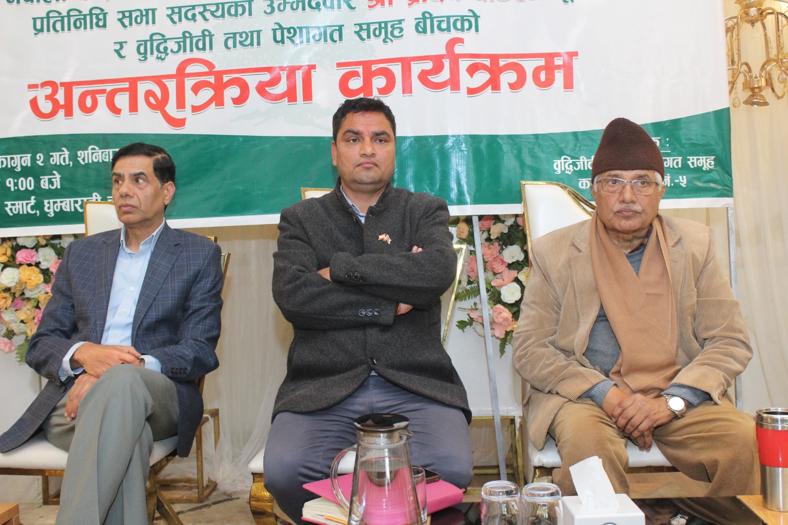 काङ्ग्रेस महामन्त्री पौडेललाई बुद्धिजीवीको शुभकामना ’कांग्रेसबाट परिवर्तनको आशा जागेको छ’