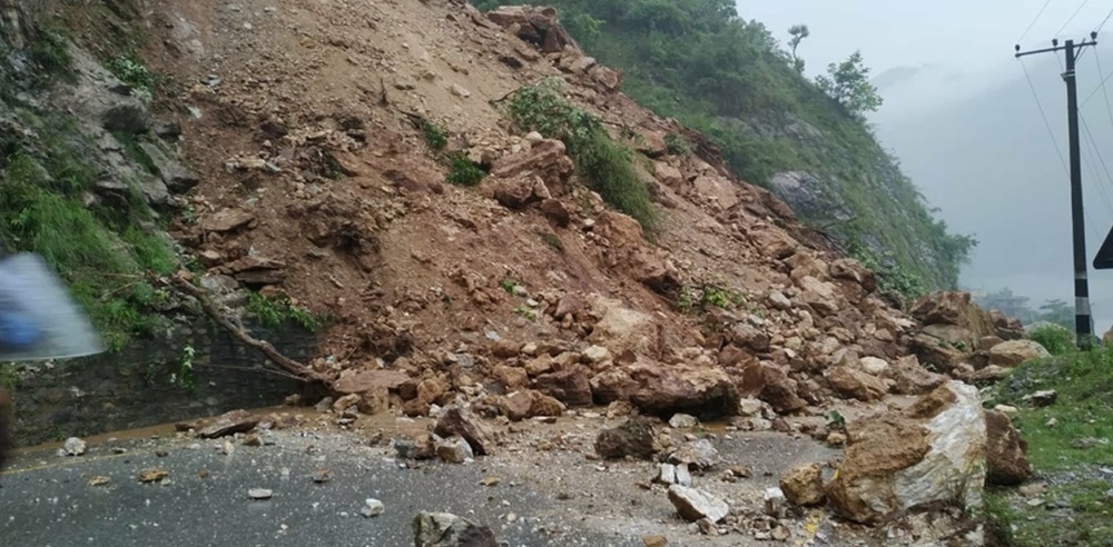 वर्षाका कारण मध्यपहाडी लोकमार्ग अवरुद्ध